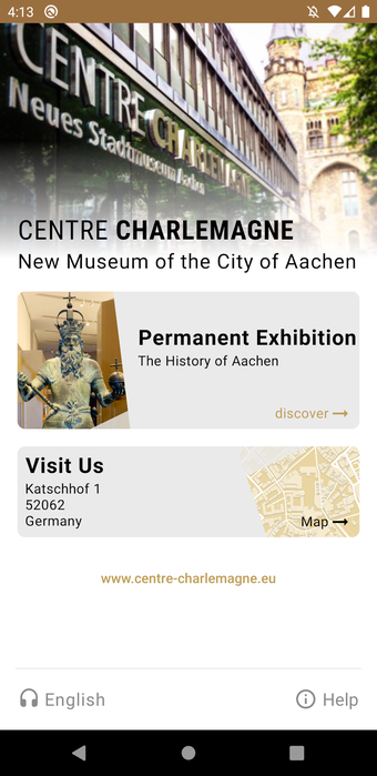 Centre Charlemagne - Guide är en utbildningsapp för Android som erbjuder en djupgående upplevelse av historien i Aachen. Genom appen kan användare lyssna på eller läsa information om både den permanenta samlingen och utvalda tillfälliga utställningar på museet. Innehållet är tillgängligt på flera språk, inklusive tyska, engelska, franska och nederländska, vilket gör det lättillgängligt för en bred publik.